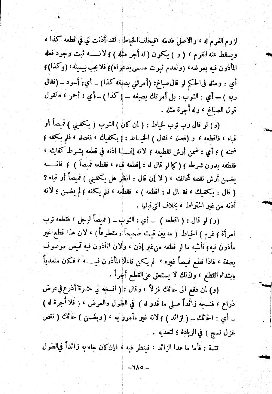(وَ) لَوْ قَالَ رَبُّ ثَوْبٍ لِخَيَّاطٍ: (إنْ كَانَ) الثَّوْبُ (يَكْفِينِي) قَمِيصًا أَوْ قَبَاءً، فَاقْطَعْهُ، وَ (فَصِّلْهُ، فَقَالَ) الْخَيَّاطُ: (يَكْفِيك، فَفَصَّلَهُ، فَلَمْ يَكْفِهِ؛ ضَمِنَهُ) ؛ أَيْ ضَمِنَ أَرْشَ تَقْطِيعِهِ؛ لِأَنَّهُ إنَّمَا أَذِنَهُ فِي قَطْعِهِ بِشَرْطِ كِفَايَتِهِ، فَقَطَعَهُ بِدُونِ شَرْطِهِ؛ (كَمَا لَوْ قَالَ لَهُ: اقْطَعْهُ قَبَاءً، فَقَطَعَهُ قَمِيصًا) ؛ فَإِنَّهُ يَضْمَنُ أَرْشَ نَقْصِهِ لِمُخَالَفَتِهِ، (لَا إنْ قَالَ: اُنْظُرْ هَلْ يَكْفِينِي) قَمِيصًا أَوْ قَبَاءً؟ (قَالَ: يَكْفِيك، فَقَالَ لَهُ: اقْطَعْهُ) ، فَقَطَعَهُ، فَلَمْ يَكْفِهِ؛ لَمْ يَضْمَنْ؛ لِأَنَّهُ أَذِنَهُ مِنْ غَيْرِ اشْتِرَاطٍ، بِخِلَافِ الَّتِي قَبْلَهَا.