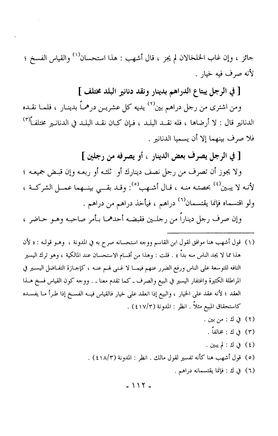 2522 - ولا يجوز أن تصرف من رجل نصف دينار، أو ثلثه أو ربعه وإن قبض جميعه، لأنه لا يبين بحصته منه، قال أشهب: وقد بقي بينهما عمل الشركة، ولو اقتسماه فإنما يقتسمان دراهم، فيأخذ دراهم من دراهم.