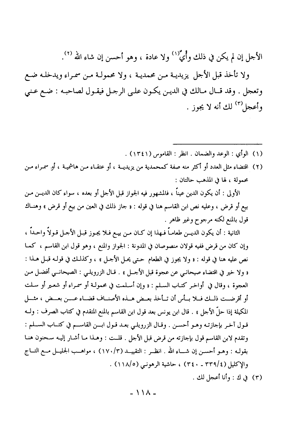 الأجل إن لم يكن في ذلك وأْي ولا عادة، وهو أحسن إن شاء الله.