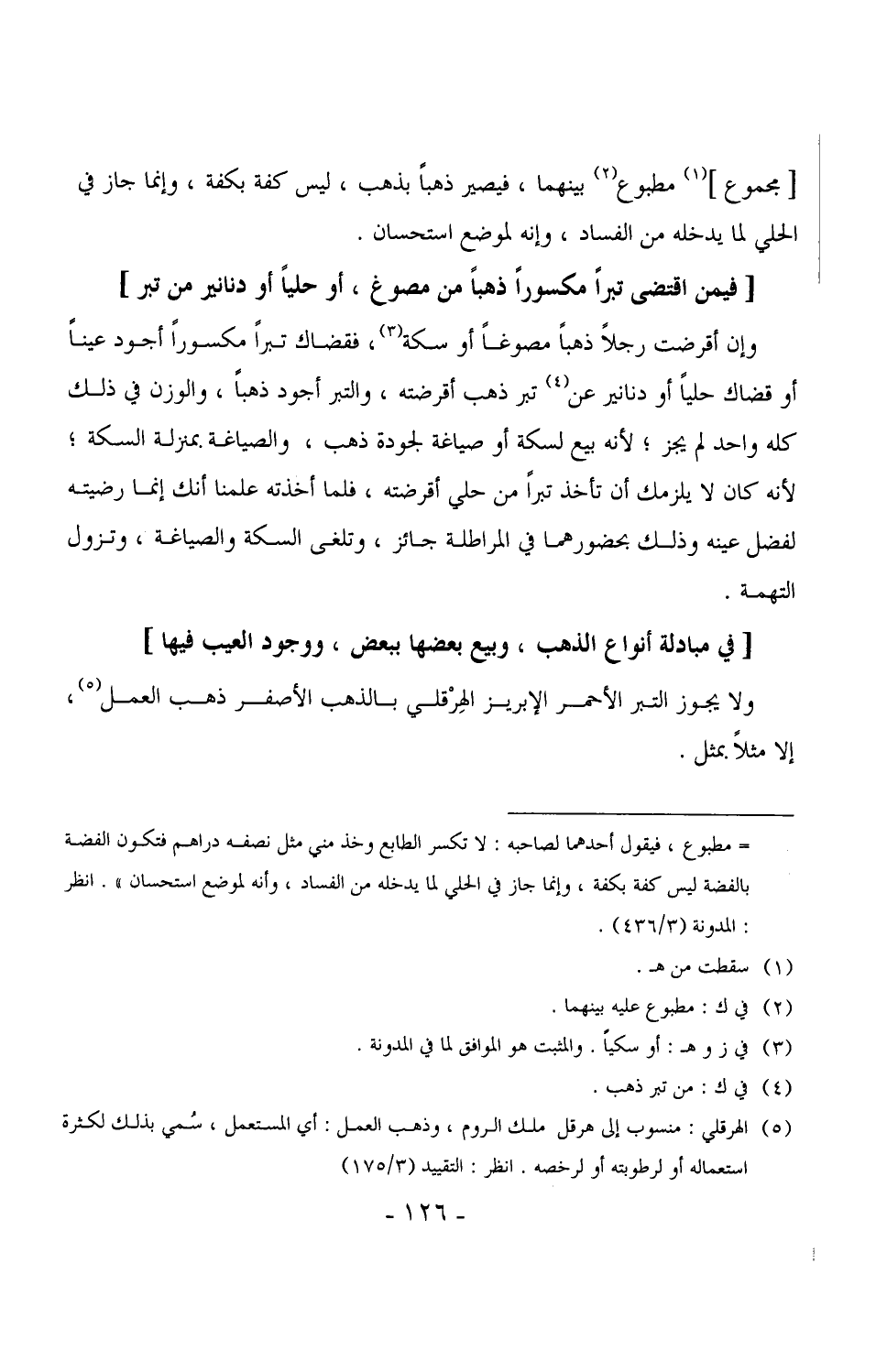 [مجموع] مطبوع بينهما، فيصير ذهباً بذهب، ليس كفة بكفة، وإنما جاز في الحلي لما يدخله من الفساد، وإنه لموضع استحسان.