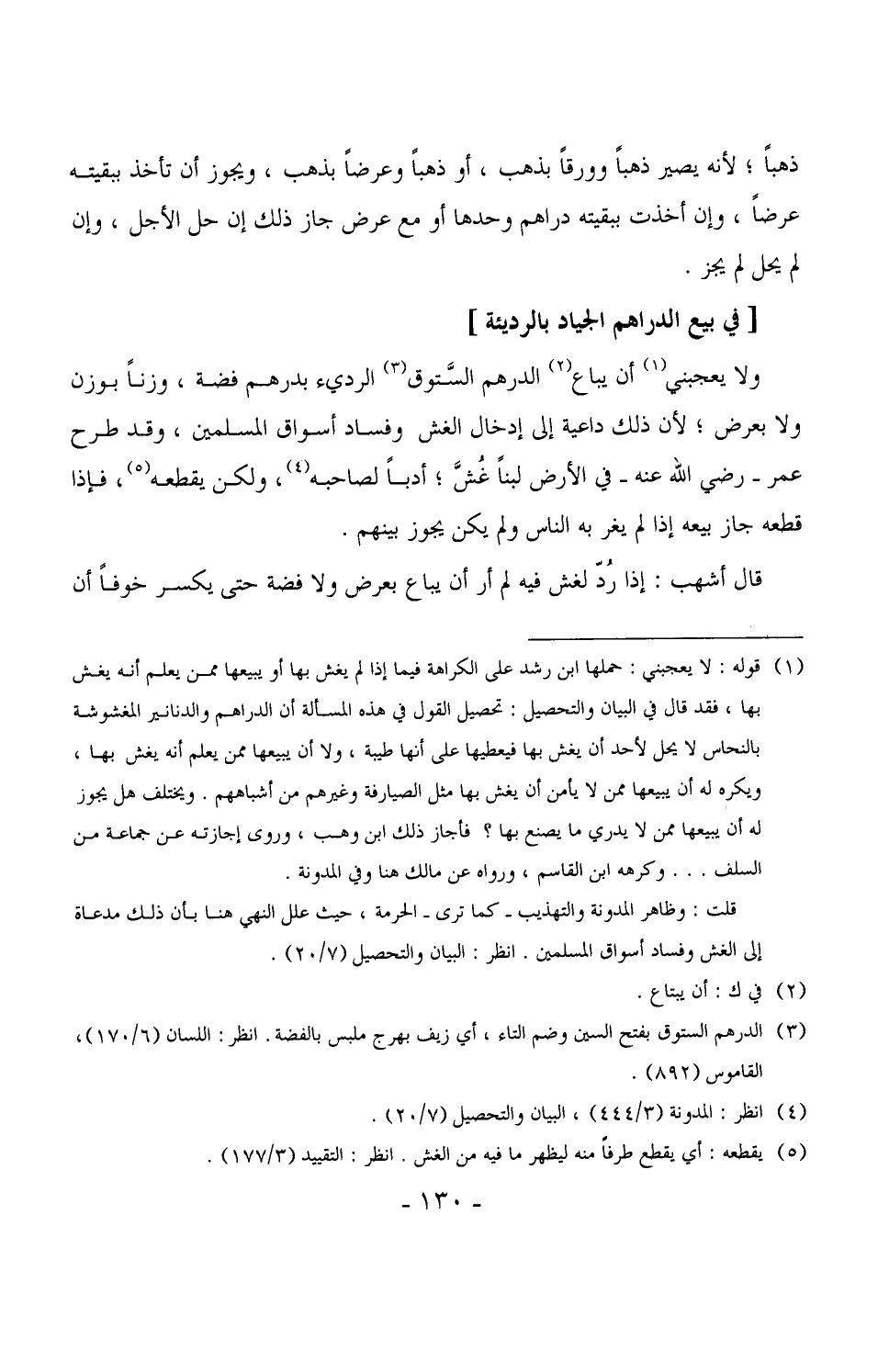 2555 - ولا يعجبني أن يباع الدرهم السَّتوق الرديء بدرهم فضة، وزناً بوزن ولا بعرض، لأن ذلك داعية إلى إدخال الغش وفساد أسواق المسلمين، وقد طرح عمر - رضي الله عنه - في الأرض لبناً غُشّ، أدباً لصاحبه، ولكن يقطعه، فإذا قطعه جاز بيعه إذا لم يغر به الناس ولم يكن يجوز بينهم.