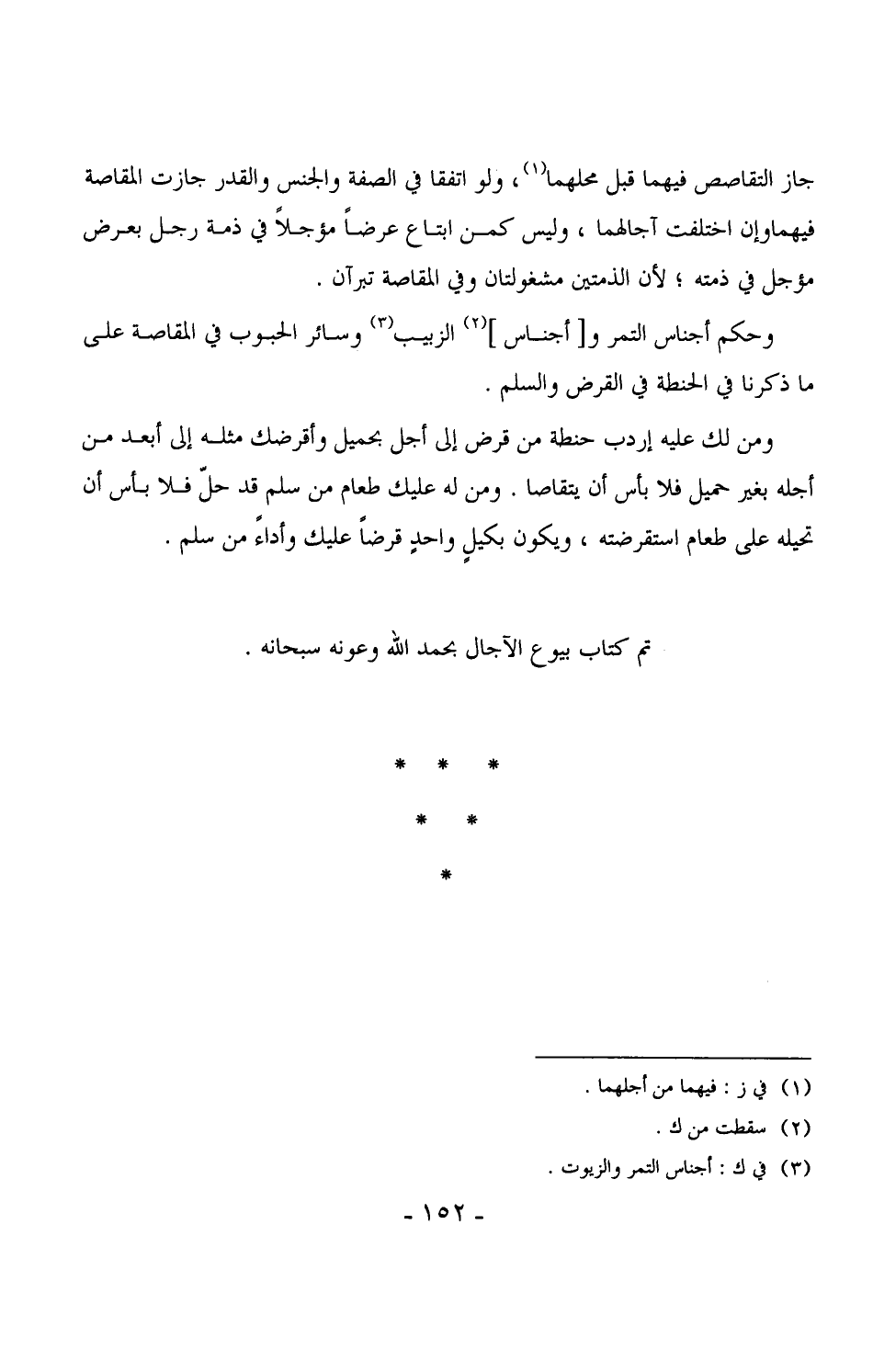 تم كتاب بيوع الآجال بحمد الله وعونه سبحانه