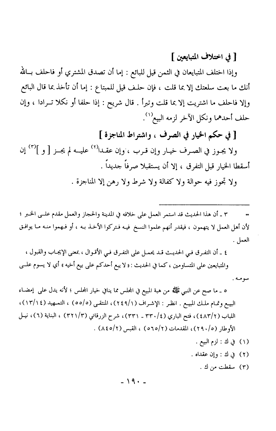 ولا تجوز فيه حوالة ولا كفالة ولا شرط ولا رهن إلا المناجزة.