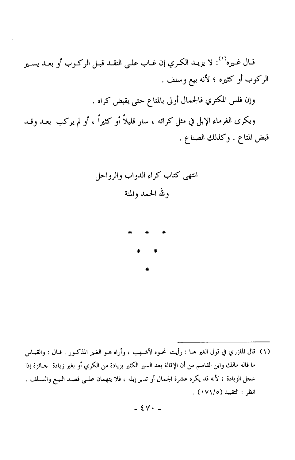 3091 - وإن فلس المكتري فالجمال أولى بالمتاع حتى يقبض كراه. ويكرى الغرماء الإبل في مثل كرائه، سار قليلاً أو كثيراً، أو لم يركب بعد وقد قبض المتاع. وكذلك الصناع.