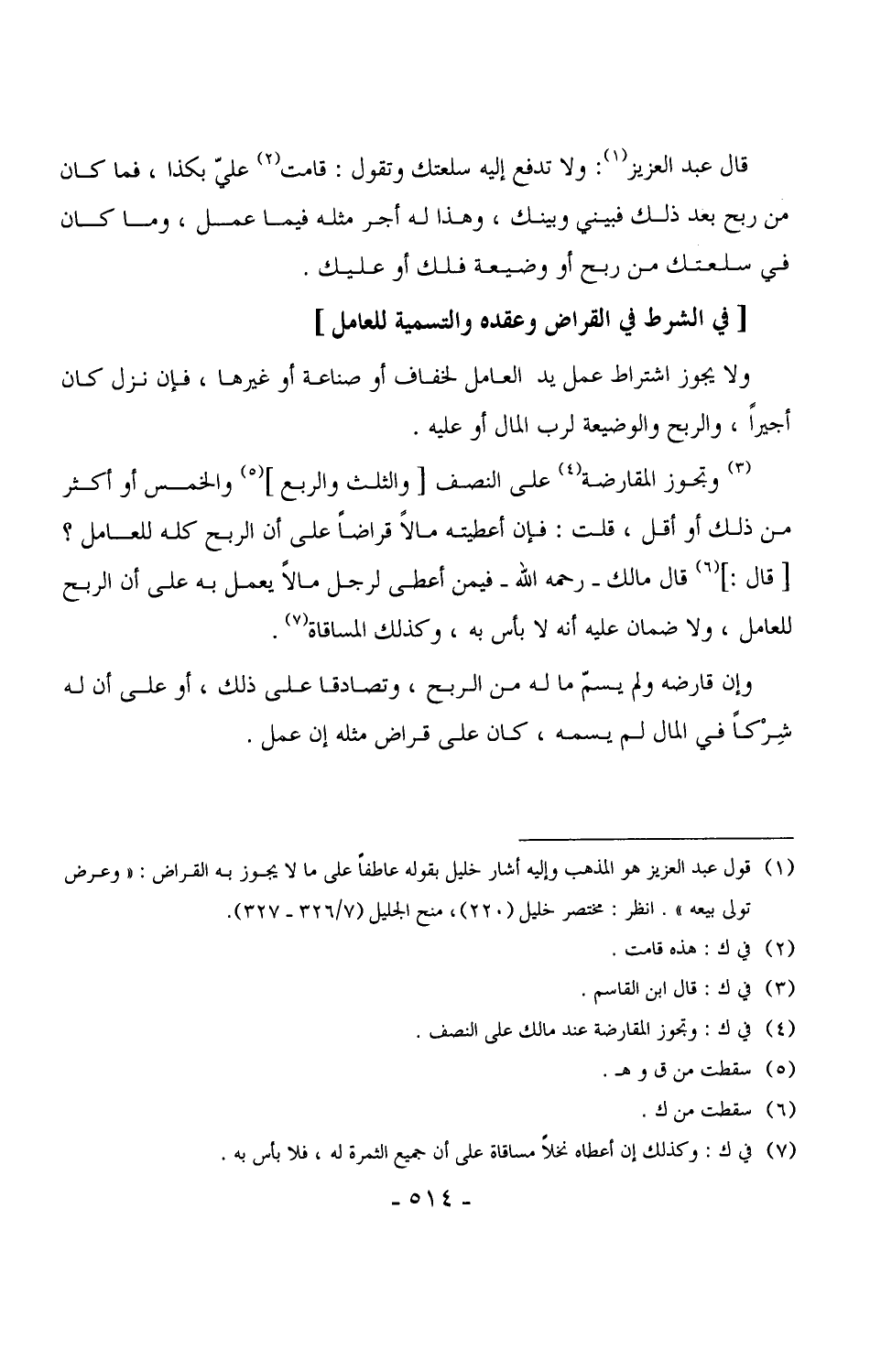قال عبد العزيز: ولا تدفع إليه سلعتك وتقول: قامت عليّ بكذا، فما كان من ربح بعد ذلك فبيني وبينك، وهذا له أجر مثله فيما عمل، وما كان في سلعتك من ربح أو وضيعة فلك أو عليك.
