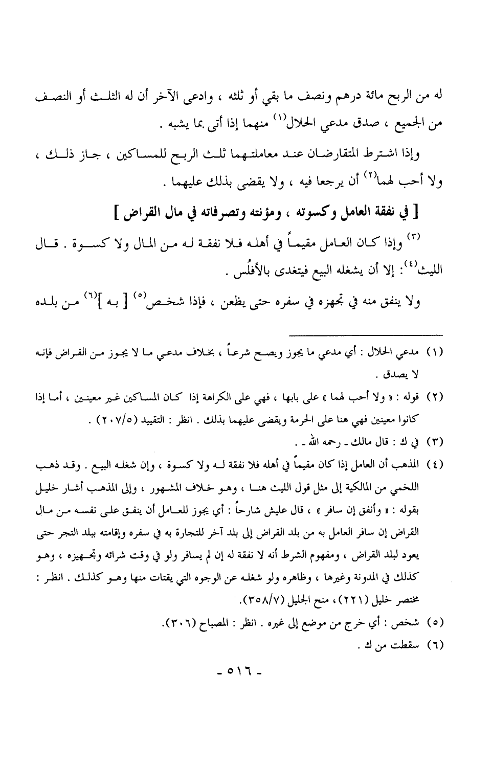 3155 - وإذا كان العامل مقيماً في أهله فلا نفقة له من المال ولا كسوة. قال الليث: إلا أن يشغله البيع فيتغدى بالأفلُس.
