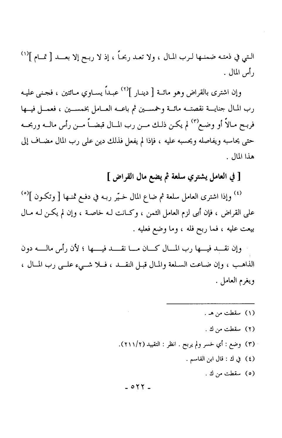 التي في ذمته ضمنها لرب المال، ولا تعد ربحاً، إذ لا ربح إلا بعد [تمام] رأس المال.
