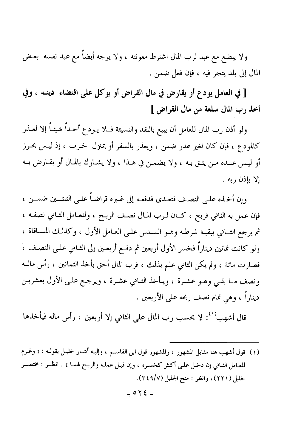 قال أشهب: لا يحسب رب المال على الثاني إلا أربعين، رأس ماله فيأخذها