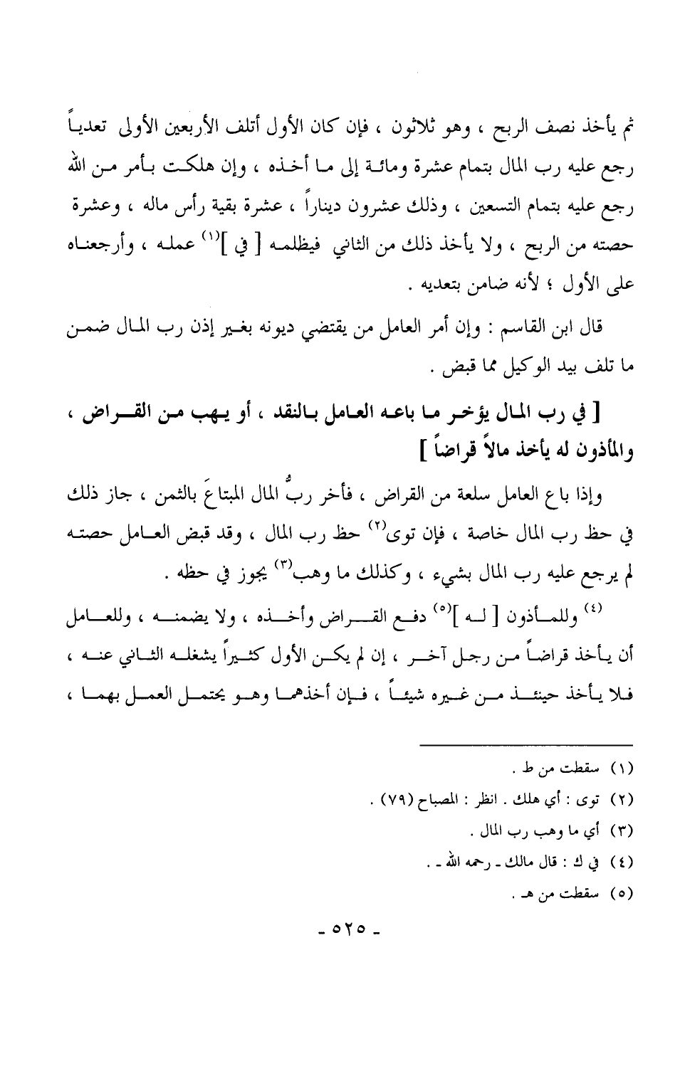 3169 - وإذا باع العامل سلعة من القراض، فأخر رب المال المبتاع بالثمن، جاز ذلك في حظ رب المال خاصة، فإن توى حظ رب المال، وقد قبض العامل حصته لم يرجع عليه رب المال بشيء، وكذلك ما وهب يجوز في حظه.