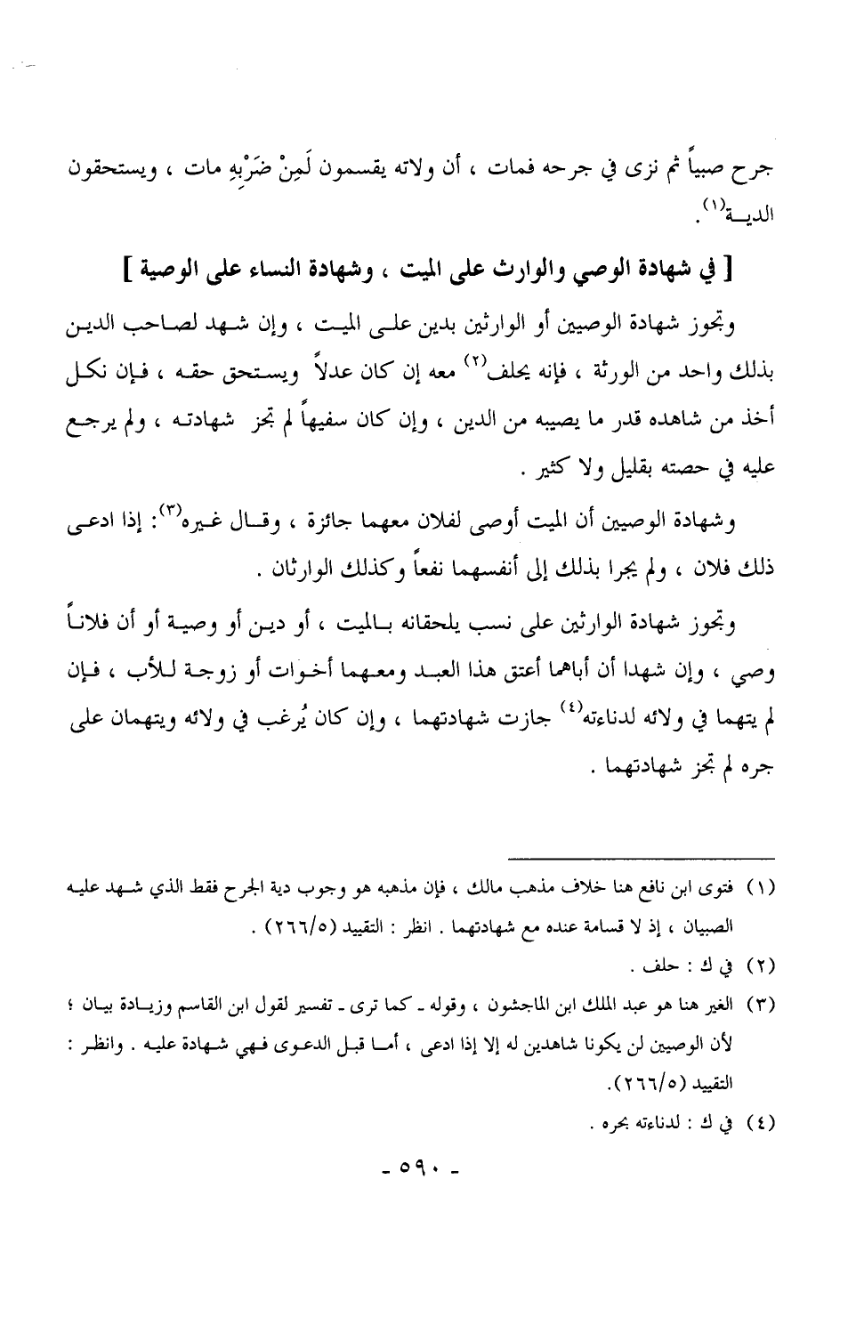 3276 - وتجوز شهادة الوصيين أو الوارثين بدين على الميت، وإن شهد لصاحب الدين بذلك واحد من الورثة، فإنه يحلف معه إن كان عدلاً ويستحق حقه، فإن نكل أخذ من شاهده قدر ما يصيبه من الدين، وإن كان سفيهاً لم تجز شهادته، ولم يرجع عليه في حصته بقليل ولا كثير.