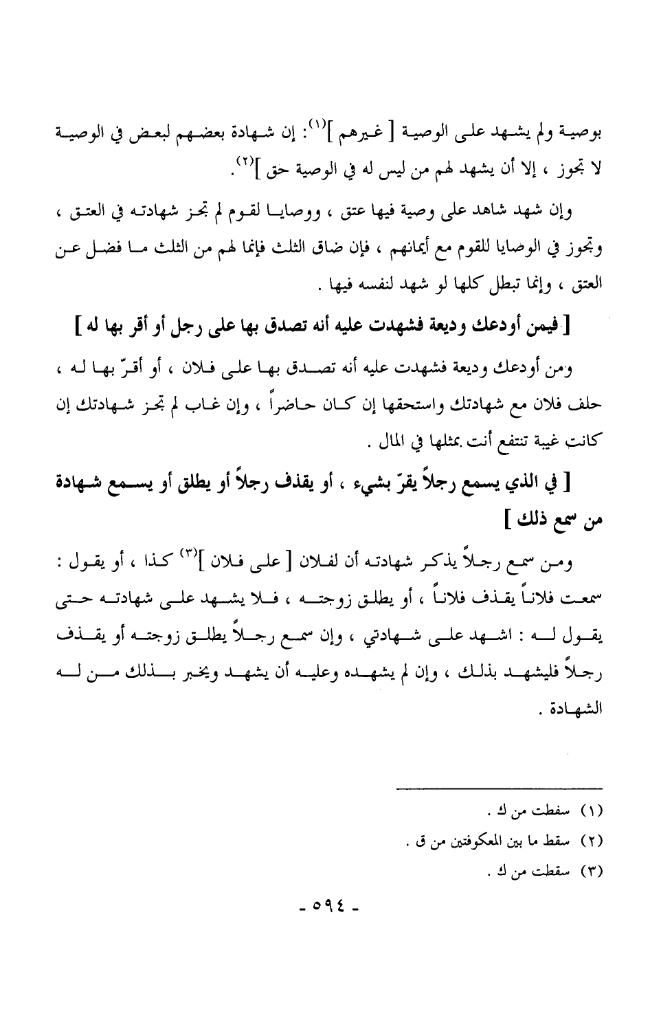 3286 - ومن سمع رجلاً يذكر شهادته أن لفلان [على فلان] كذا، أو يقول: سمعت فلاناً يقذف فلاناً، أو يطلق زوجته، فلا يشهد على شهادته حتى يقول له: اشهد على شهادتي، وإن سمع رجلاً يطلق زوجته أو يقذف رجلاً فليشهد بذلك، وإن لم يشهده وعليه أن يشهد ويخبر بذلك من له الشهادة.