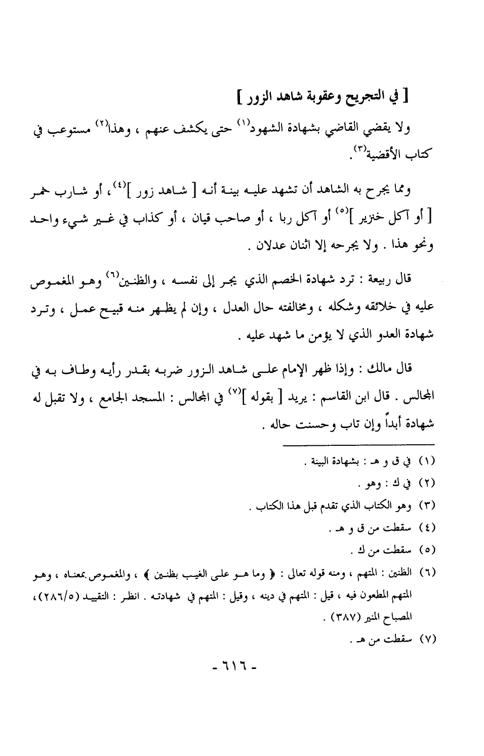 قال مالك: وإذا ظهر الإمام على شاهد الزور ضربه بقدر رأيه وطاف به في المجالس. قال ابن القاسم: يريد [بقوله] في المجالس: المسجد الجامع، ولا تقبل له شهادة أبداً وإن تاب وحسنت حاله.