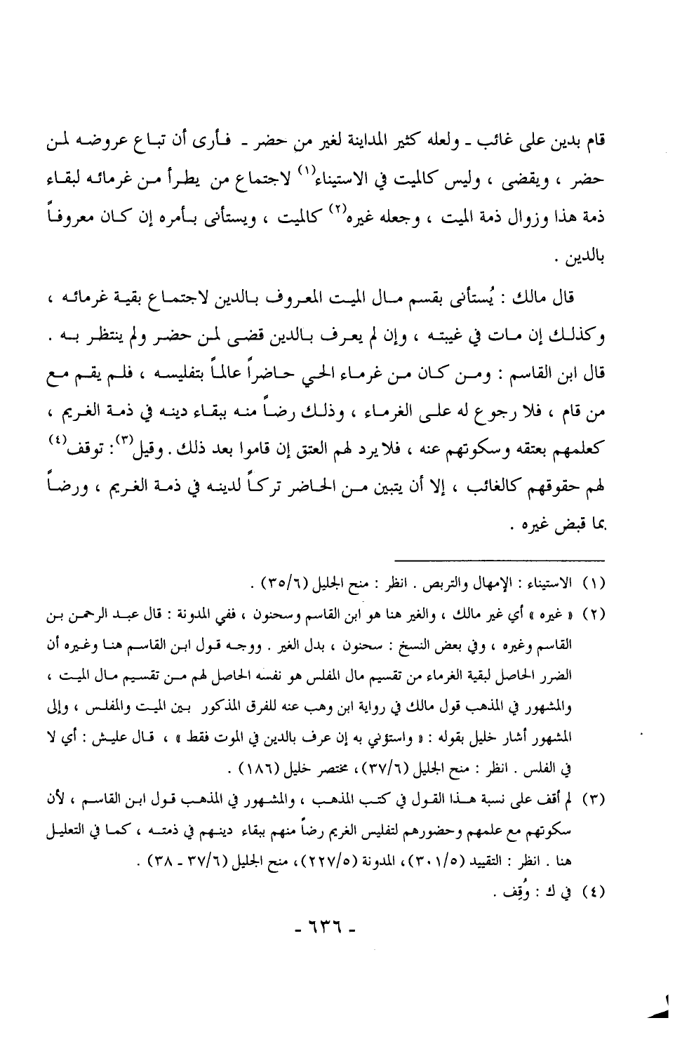 (¬1) هو بمعنى التربص والإمهال وانظر: حاشية الدسوقي (4/128) ، والتاج والإكليل (6/316) ، والمدونة الكبرى (14/364) ، (15/59) ، ومنح الجليل (6/35) .