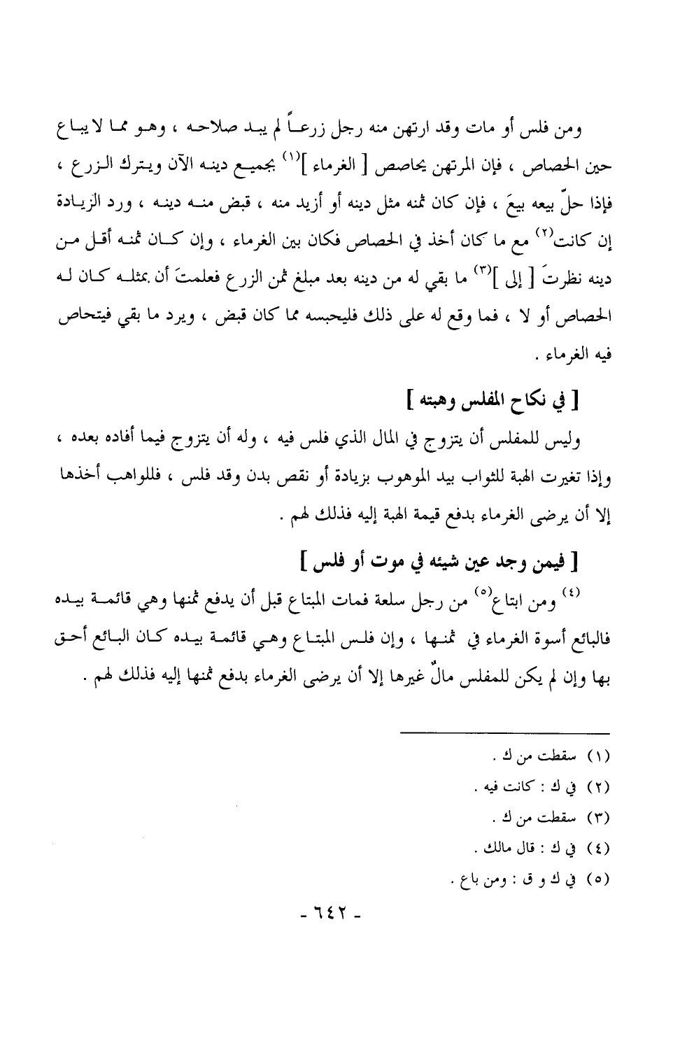 3365 - وليس للمفلس أن يتزوج في المال الذي فلس فيه، وله أن يتزوج فيما أفاده بعده، وإذا تغيرت الهبة للثواب بيد الموهوب بزيادة أو نقص بدن وقد فلس، فللواهب أخذها إلا أن يرضى الغرماء بدفع قيمة الهبة إليه فذلك لهم. (¬1)