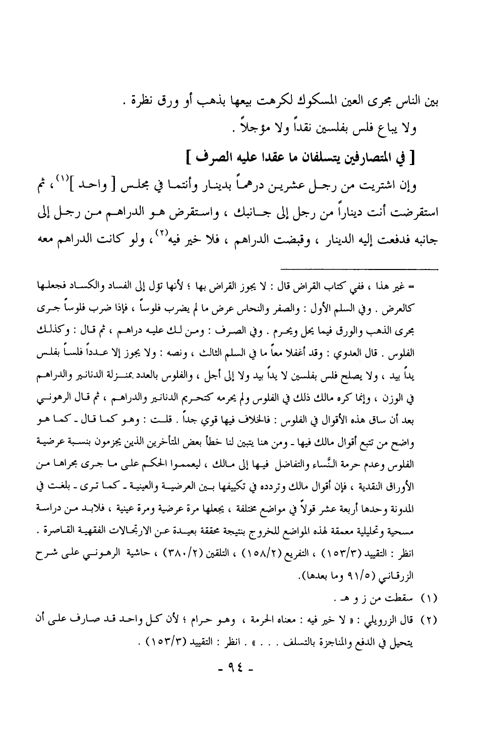 بين الناس مجرى العين المسكوك لكرهت بيعها بذهب أو ورق نظرة.