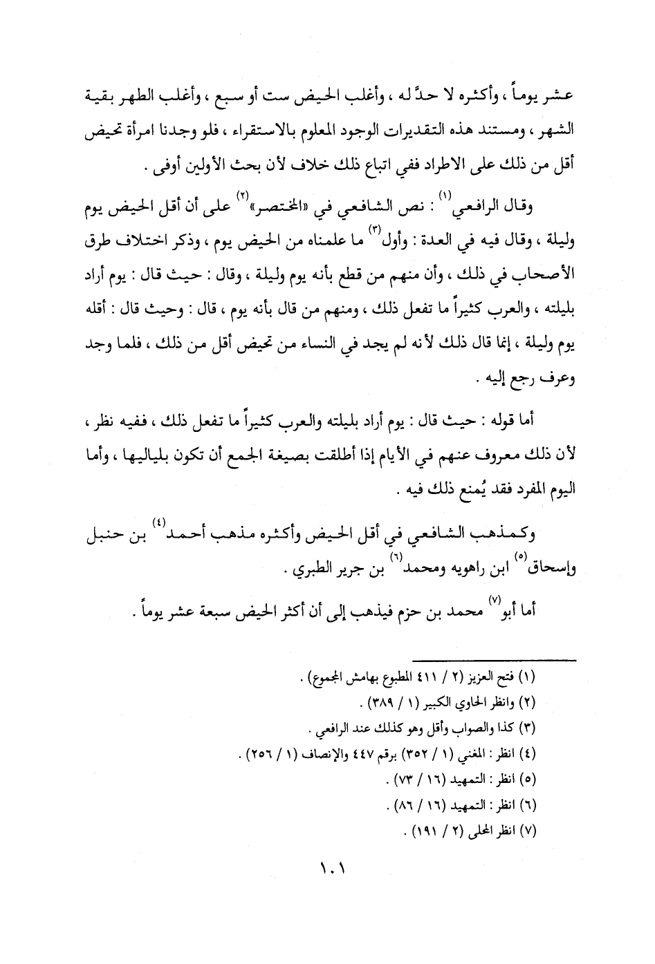 وكمذهب الشافعي في أقل الحيض وأكثره مذهب أحمد (¬4) بن حنبل وإسحاق (¬5) بن راهويه ومحمد (¬6) بن جرير الطبري.