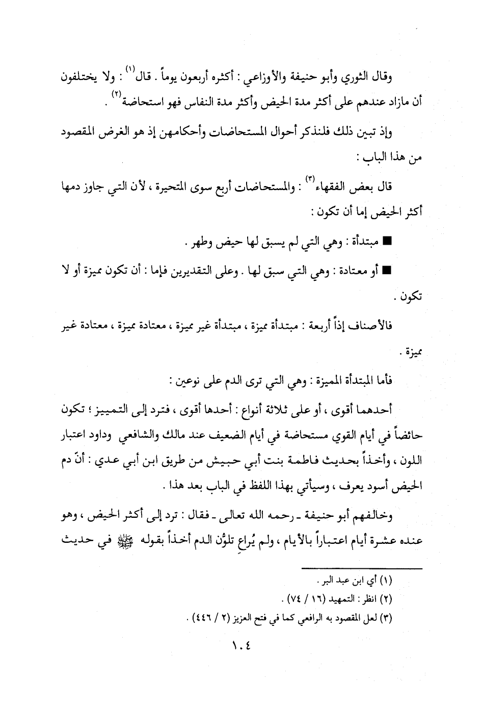 وإذ تبين ذلك فلنذكر أحوال المستحاضات وأحكامهن إذ هو الغرض المقصود من هذا الباب:
