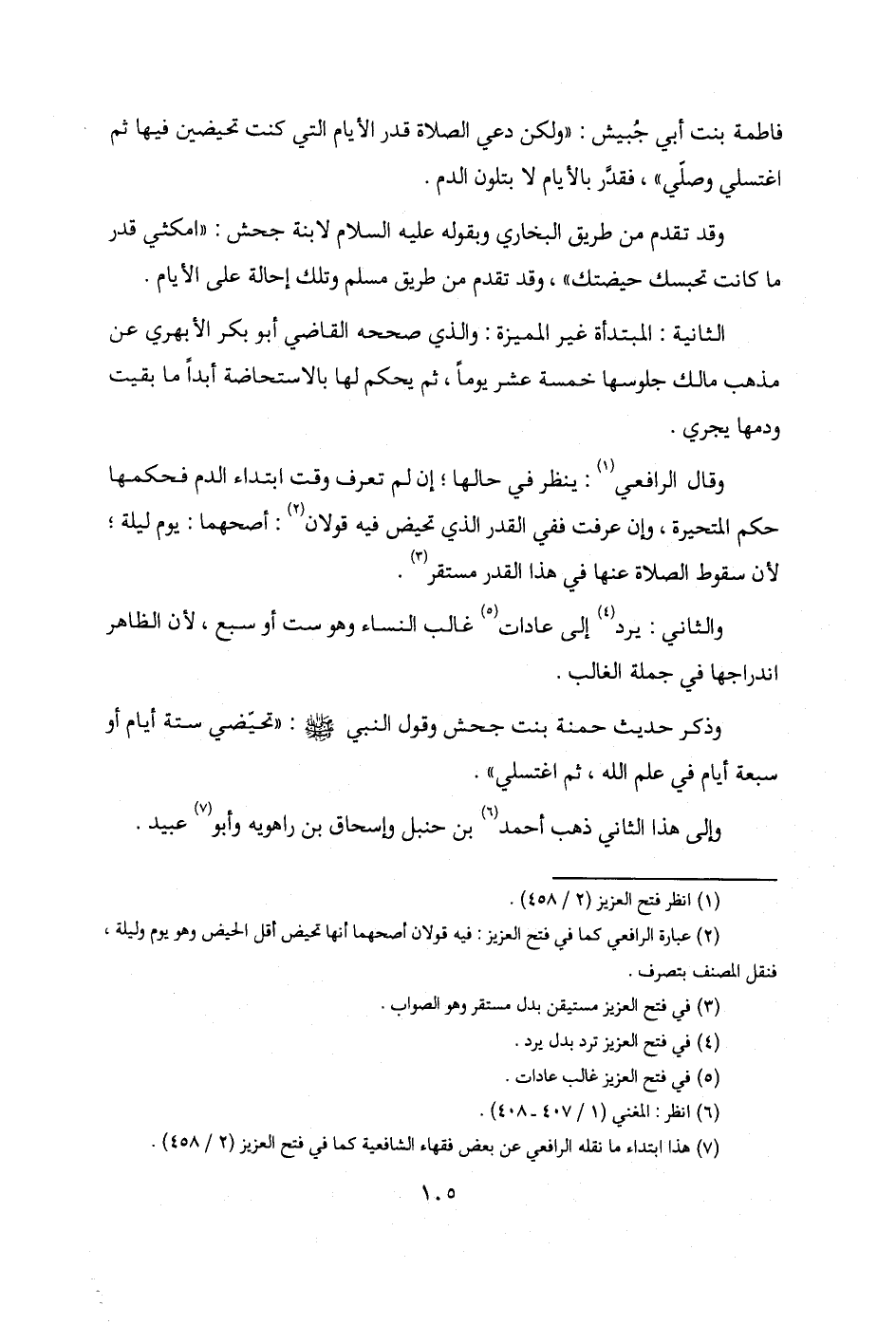 فاطمة بنت أبي جُبيش: "ولكن دعي الصلاة قدر الأيام التي كنت تحيضين فيها ثم اغتسلي وصلّي"، فقدر بالأيام لا بتلون الدم.