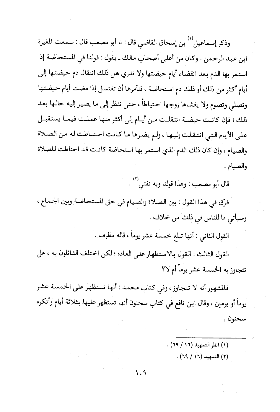 وذكر إسماعيل (¬1) بن إسحاق القاضي قال: نا أبو مصعب قال: سمعت المغيرة بن عبد الرحمن -وكان من أعلى أصحاب مالك- يقول: قولنا في المستحاضة إذا استمر بها الدم بعد انقضاء أيام حيضتها ولا تدري هل ذلك انتقال دم حيضتها إلى أيام أكثر من ذلك أو ذلك دم استحاضة، فنأمرها أن تغتسل إذا مضت أيام حيضتها وتصلي وتصوم ولا يغشاها زوجها احتياطًا، حتى ننظر إلى ما يصير إليه حالها بعد ذلك؛ فإن كانت حيضة انتقلت من أيام إلى أكثر منها عملت فيما يستقبل على الأيام التي انتقلت إليها, ولم يضرها ما كانت احتاطت له من الصلاة والصيام، وإن كان ذلك الدم الذي استمر بها استحاضة كانت قد احتاطت للصلاة والصيام.