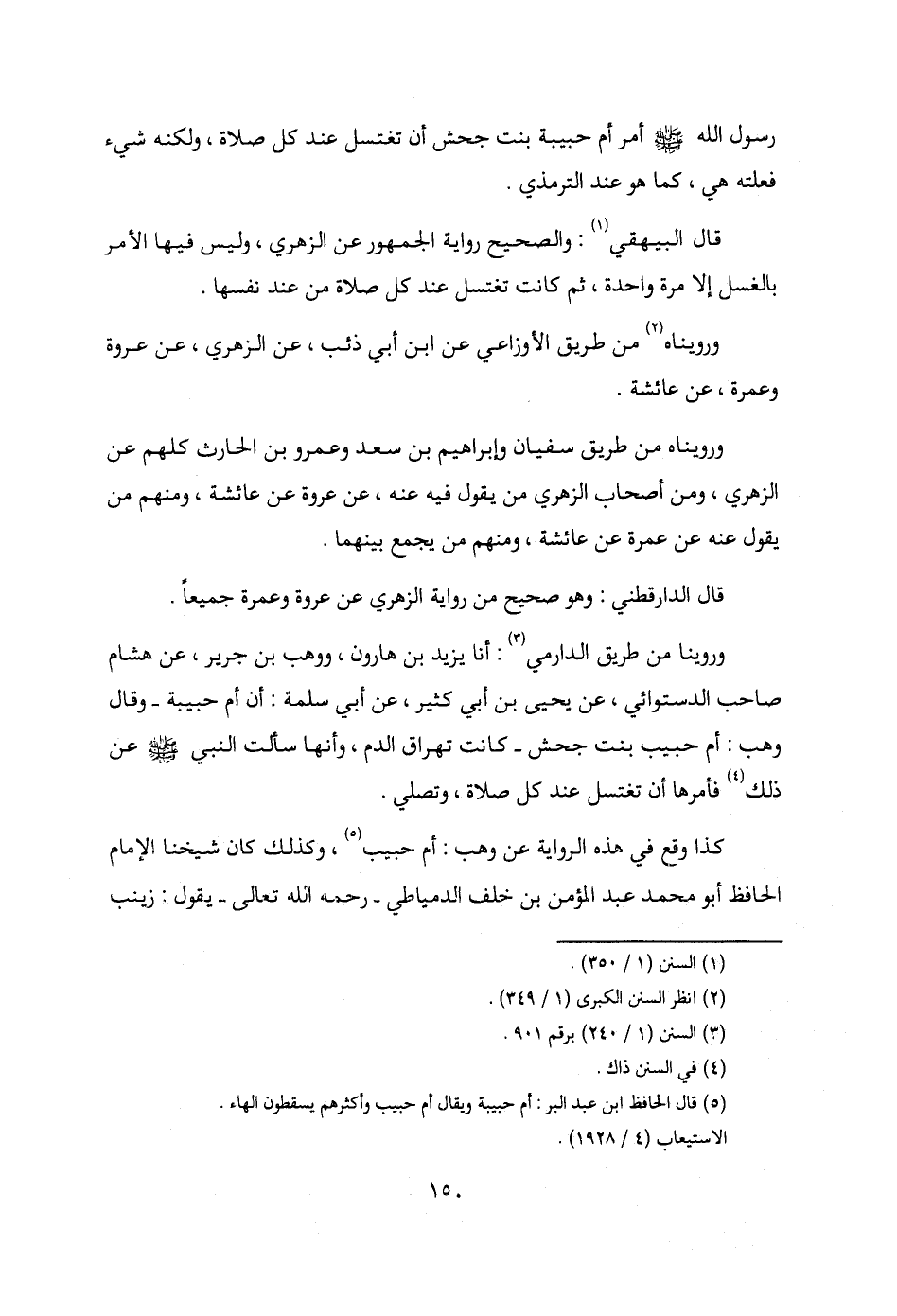 رسول الله - صلى الله عليه وسلم - أمر أم حبيبة بنت جحش أن تغتسل عند كل صلاة، ولكنه شيء فعلته هي، كما هو عند التِّرمذيّ.
