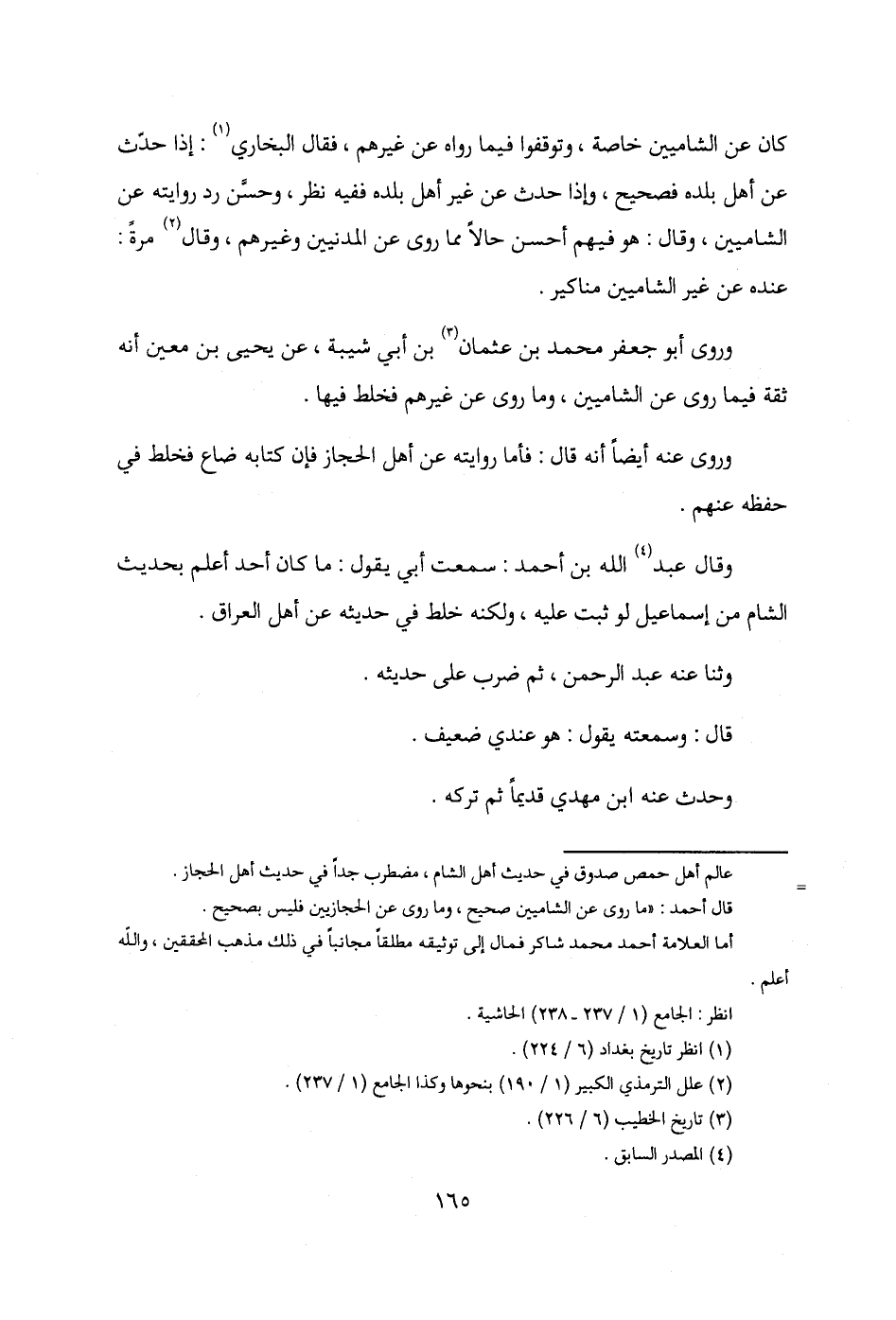 قال أحمد: "ما روى عن الشاميين صحيح، وما روى عن الحجازيين فليس بصحيح.