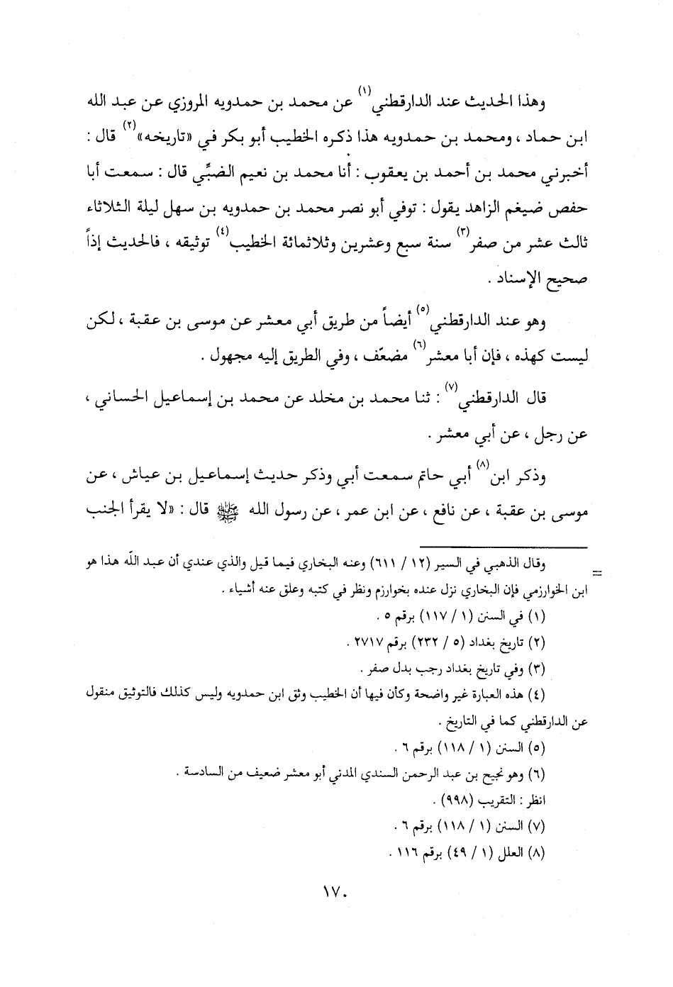 (¬4) هذه العبارة غير واضحة وكأن فيها أن الخطيب وثق ابن حمدويه وليس كذلك فالتوثيق منقول عن الدارقطني كما في التاريخ.