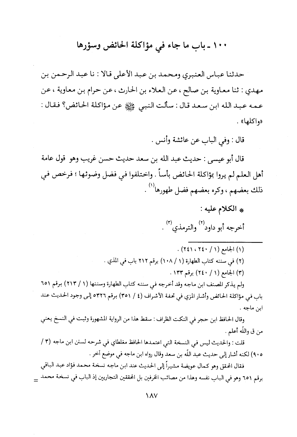 100 - باب ما جاء في مؤاكلة الحائض وسؤرها