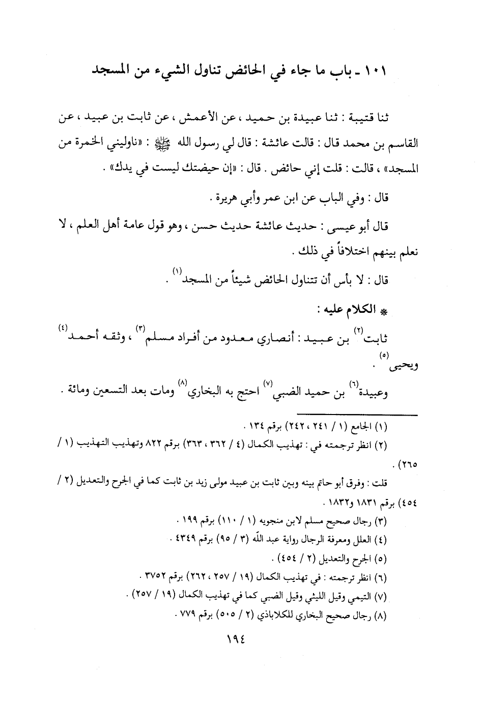 101 - باب ما جاء في الحائض تناول الشيء من المسجد