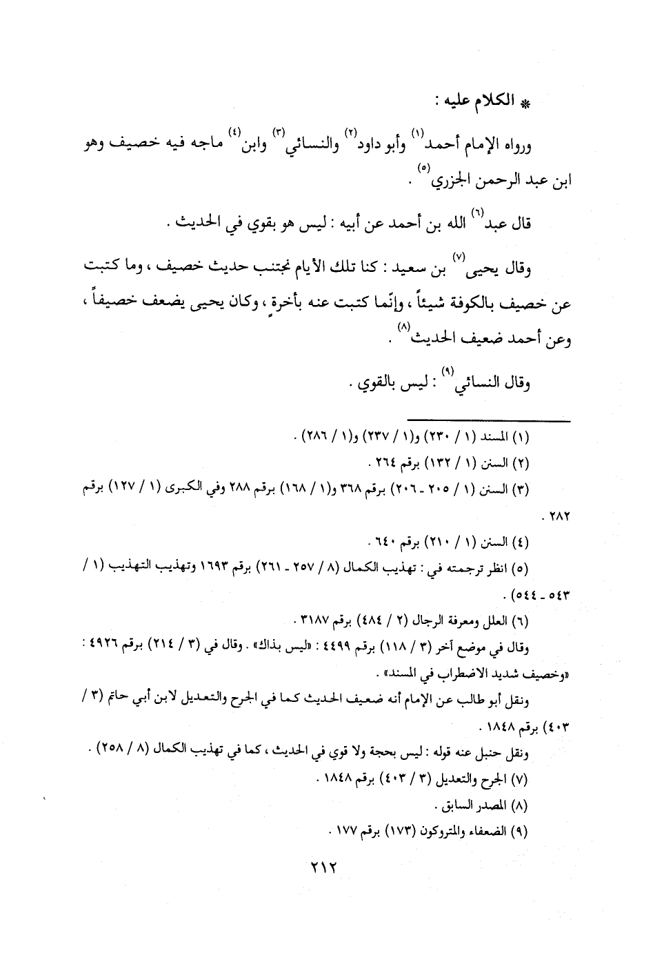 وقال في موضع آخر (3/ 118) برقم 4499: "ليس بذاك". وقال في (3/ 214) برقم 4926: "وخصيف شديد الاضطراب في المسند".