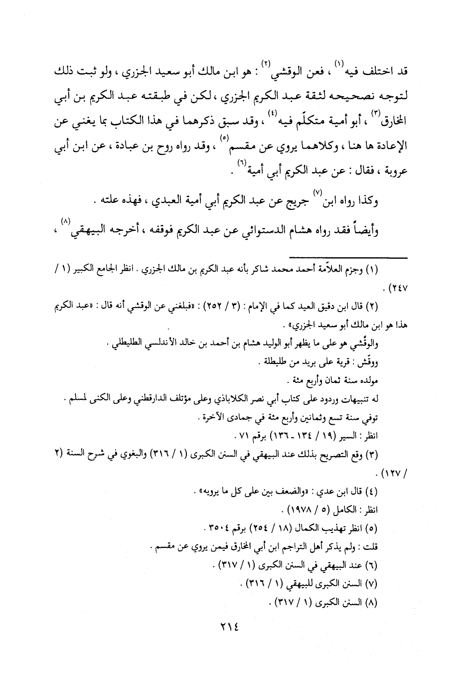 (¬2) قال ابن دقيق العيد كما في الإمام: (3/ 252): "فبلغني عن الوقشي أنه قال: "عبد الكريم هذا هو ابن مالك أبو سعيد الجزري".