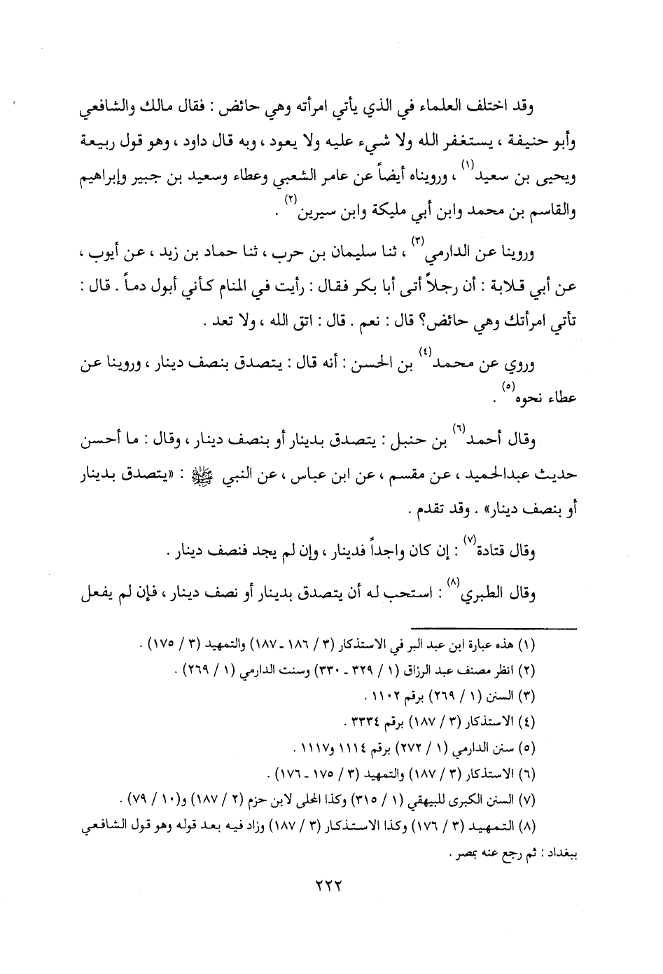 (¬1) هذه عبارة ابن عبد البر في الاستذكار (3/ 186 - 187) والتمهيد (3/ 175).