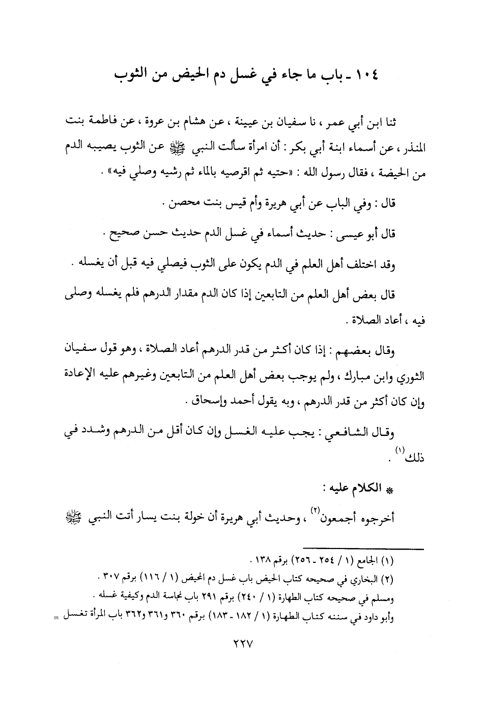 104 - باب ما جاء في غسل دم الحيض من الثوب