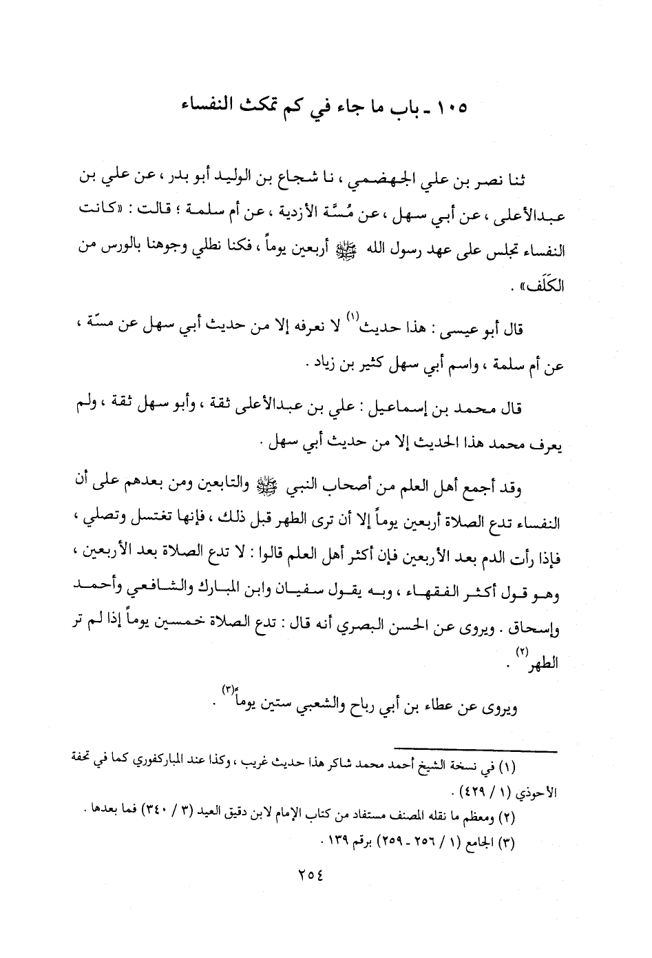 105 - باب ما جاء في كم تمكث النفساء