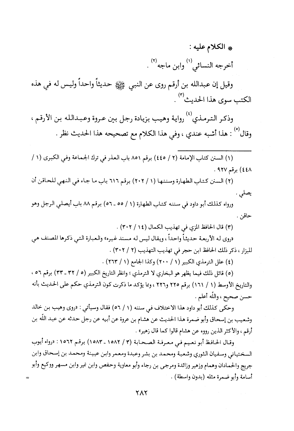 وقيل إن عبد الله بن أرقم روى عن النبي - صلى الله عليه وسلم - حديثًا واحدًا وليس له في هذه الكتب سوى هذا الحديث (¬3).