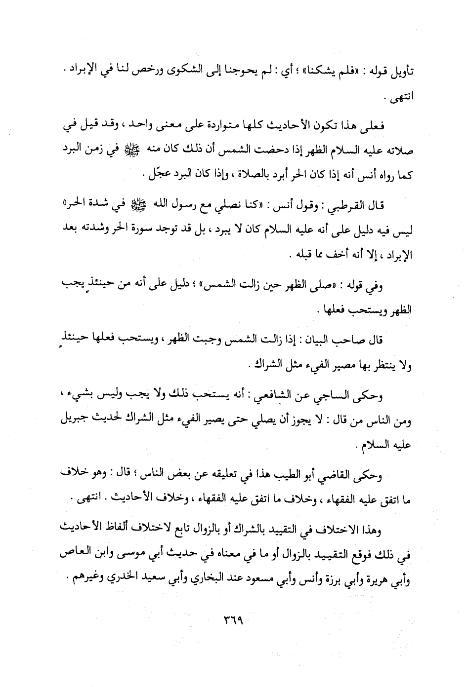 قال القرطبي: وقول أنس: "كنا نصلي مع رسول الله - صلى الله عليه وسلم - في شدة الحر" ليس فيه دليل على أنه - عليه السلام - كان لا يبرد، بل قد توجد سورة الحر وشدته بعد الإبراد، إلا أنه أخف مما قبله.