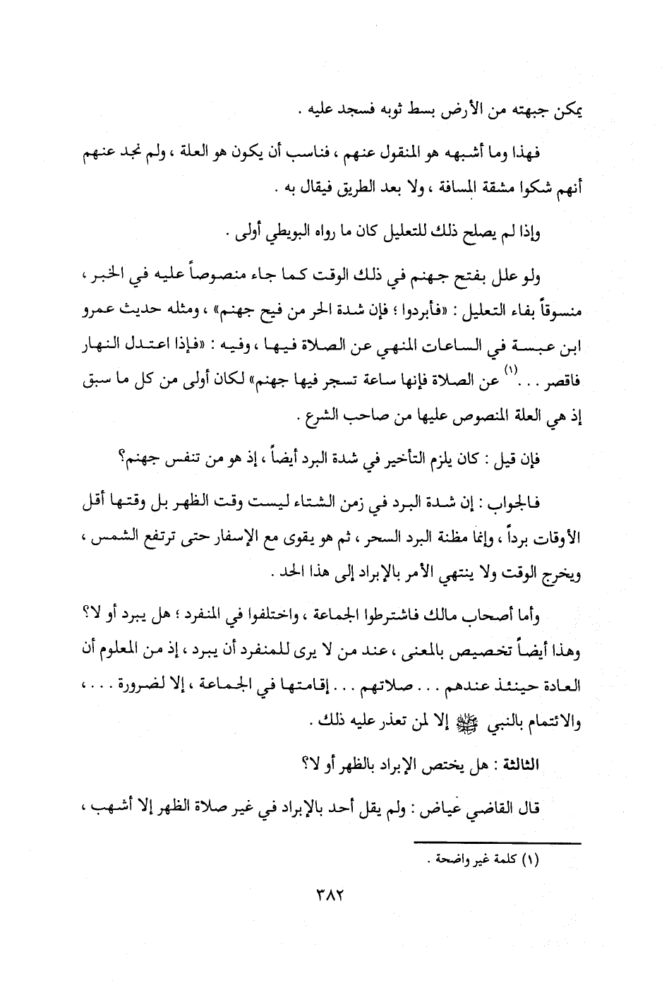 ولو علل بفتح جهنم في ذلك الوقت كما جاء منصوصًا عليه في الخبر، منسوقًا بفاء التعليل: "فأبردوا؛ فإن شدة الحر من فيح جهنم"، ومثله حديث عمرو بن عبسة في الساعات المنهي عن الصلاة فيها، وفيه: "فإذا اعتدل النهار قصر ... (¬1) عن الصلاة فإنها ساعة تسجر فيها جهنم" لكان أولى من كل ما سبق إذ هي العلة المنصوص عليها من صاحب الشرع.