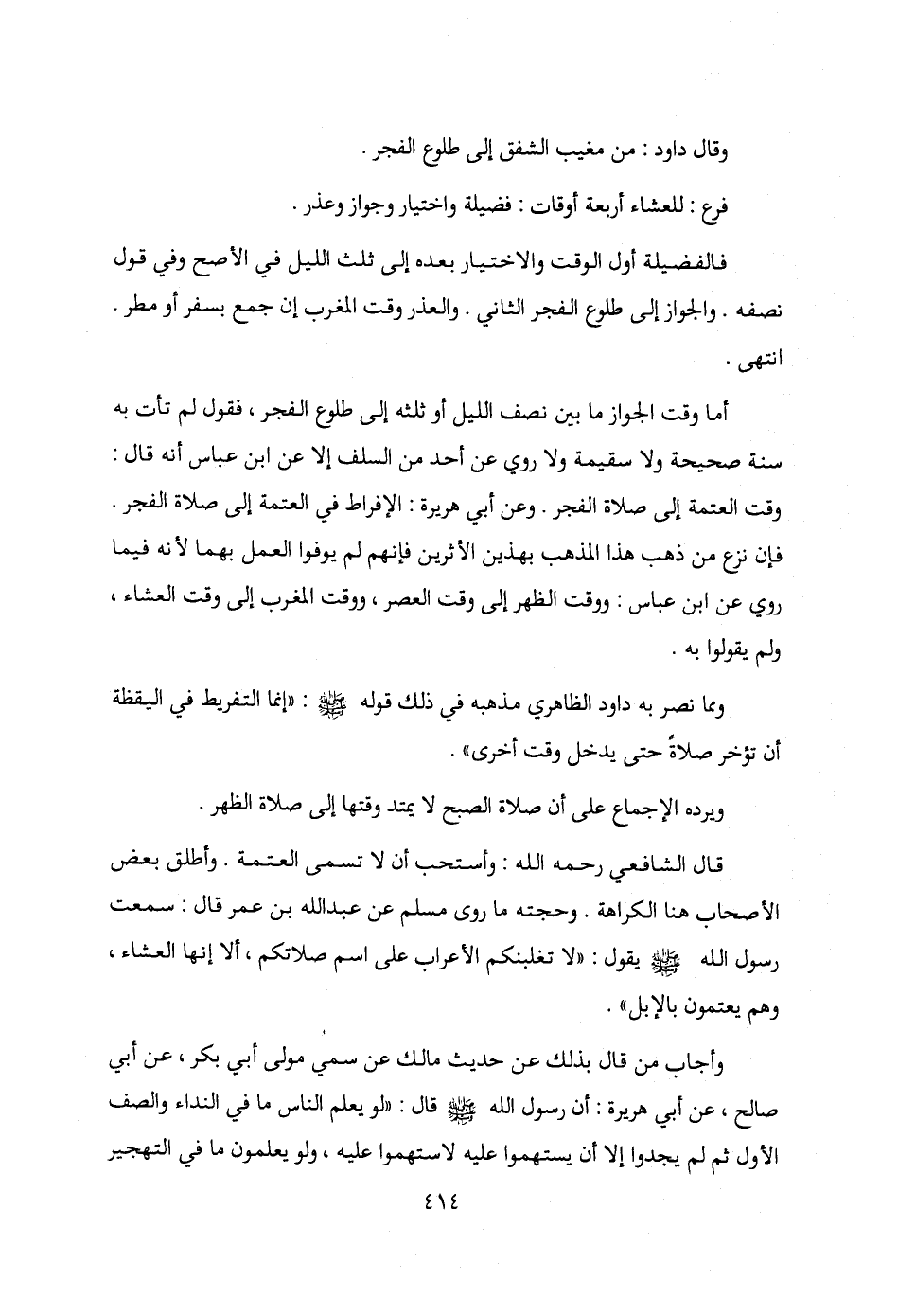 ومما نصر به داود الظاهري مذهبه في ذلك قوله - صلى الله عليه وسلم -: "إنما التفريط في اليقظة أن تؤخر صلاةً حتى يدخل وقت أخرى".