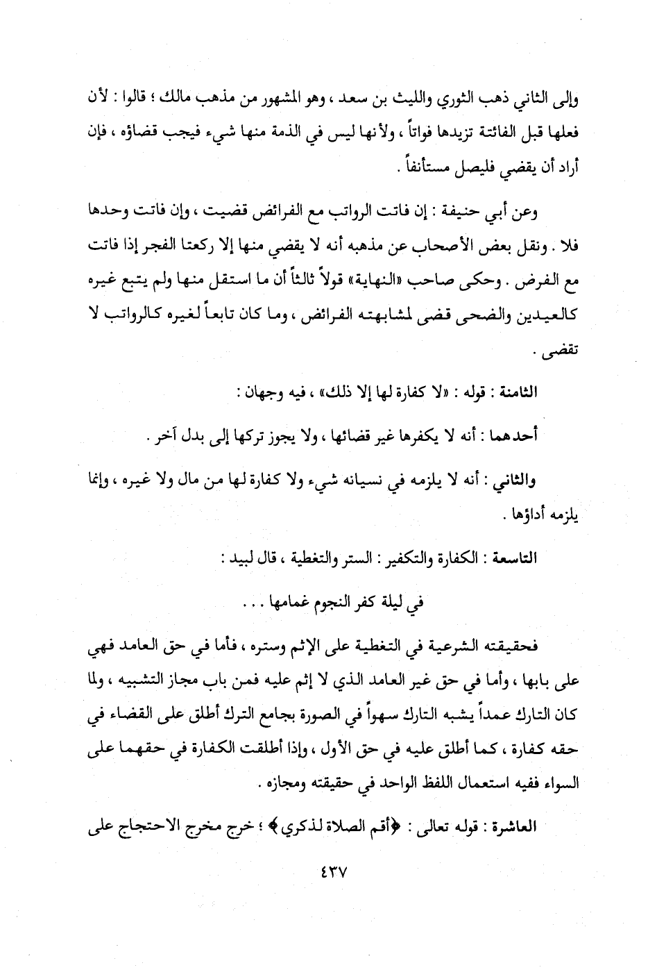التاسعة: الكفارة والتكفير: الستر والتغطية، قال لبيد: