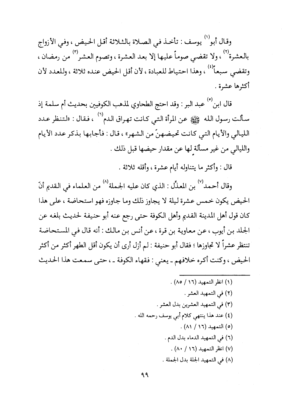 قال ابن (¬5) عبد البر: وقد احتج الطحاوي لمذهب الكوفيين بحديث أم سلمة إذ سألت رسول الله - صلى الله عليه وسلم - عن المرأة التي كانت تهراق الدم (¬6)، فقال: "لتنظر عدد الليالي والأيام التي كانت تحيضهنّ من الشهر"، قال: فأجابها بذكر عدد الأيام والليالي من غير مسألة لها عن مقدار حيضها قبل ذلك.