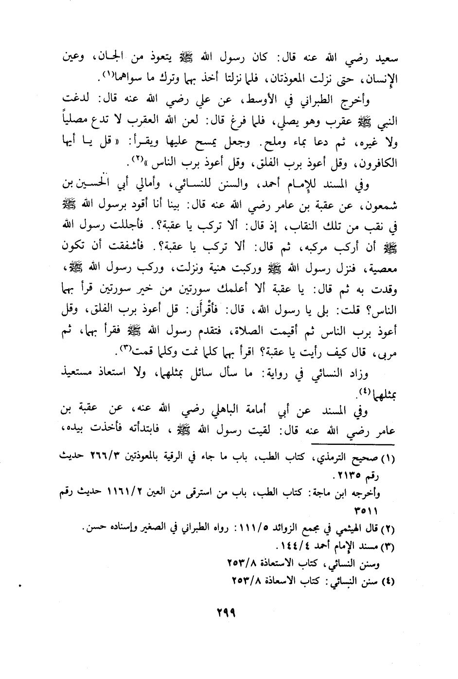 شمعون، عن عقبة بن عامر رضي الله عنه قال: بينا أنا أقود برسول الله - صلى الله عليه وسلم - في نقب من تلك النقاب، إذ قال: ألا تركب يا عقبة؟. فأجللت رسول الله - صلى الله عليه وسلم - أن أركب مركبه، ثم قال: ألا تركب يا عقبة؟. فأشفقت أن تكون معصية، فنزل رسول الله - صلى الله عليه وسلم - وركبت هنية ونزلت، وركب رسول الله - صلى الله عليه وسلم - وقدت به ثم قال: يا عقبة ألا أعلمك سورتين من خير سورتين قرأ بهما الناس؟