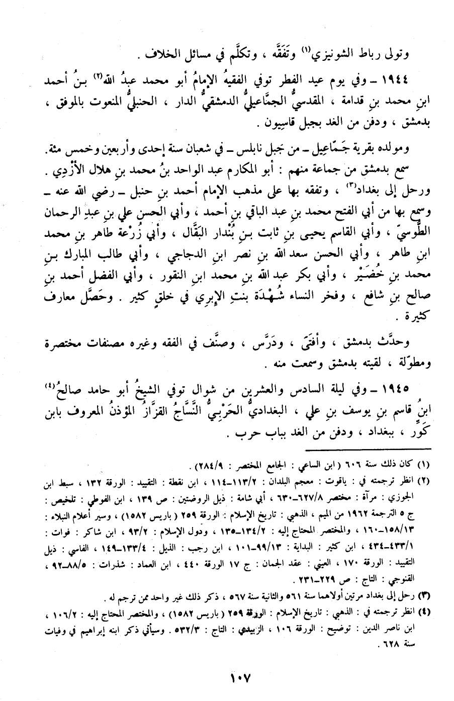 1944 - وفي يوم عيد الفطر توفي الفقيه الإمام أبو محمد عبد الله بن أحمد بن محمد بن قدامة، المقدسي الجماعيلي الدمشقي الدار، الحنبلي المنعوت بالموفق، بدمشق، ودفن من الغد بجبل قاسيون.