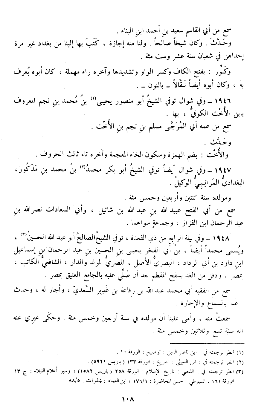 1947 - وفي شوال أيضا توفي الشيخ أبو بكر محمد بن محمد بن مذكور، البغدادي المراتبي الوكيل