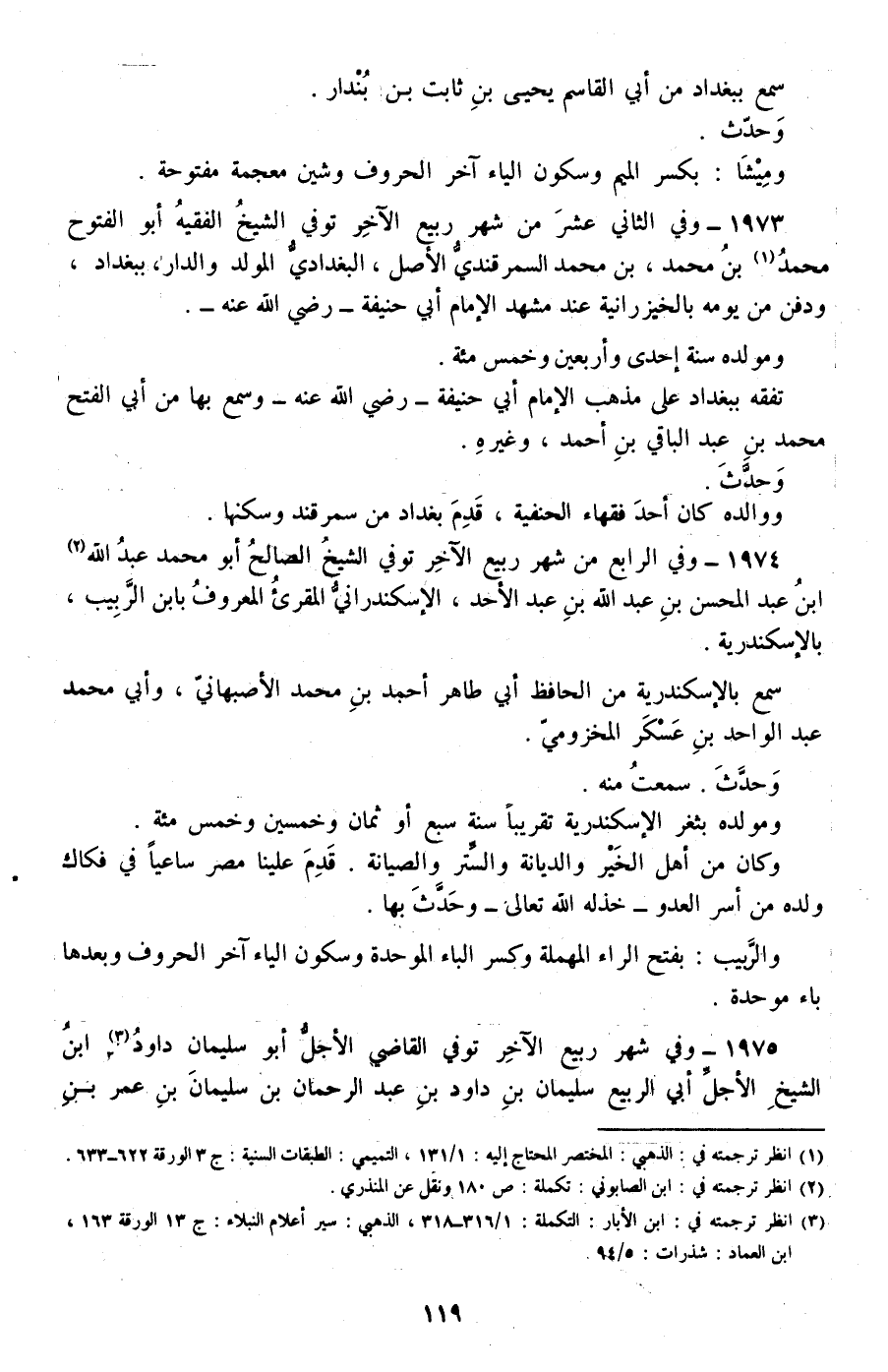 1973 - وفي الثاني عشر من شهر ربيع الآخر توفي الشيخ الفقيه أبو الفتوح محمد بن محمد، بن محمد السمرقندي الأصل، البغدادي المولد والدار، ببغداد، ودفن من يومه بالخيزرانية عند مشهد الإمام أبي حنيفة –رضي الله عنه-.