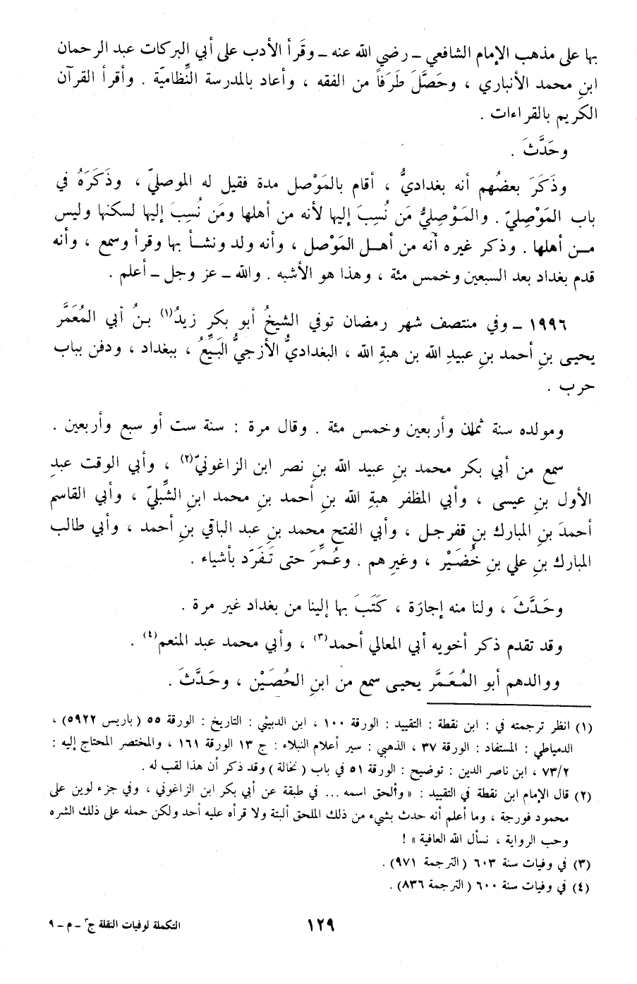 1996 - وفي منتصف شهر رمضان توفي الشيخ أبو بكر زيد بن أبي المعمر يحيى بن أحمد بن عبيد الله بن هبة الله، البغدادي الأزجي البيع، ببغداد، ودفن بباب حرب.