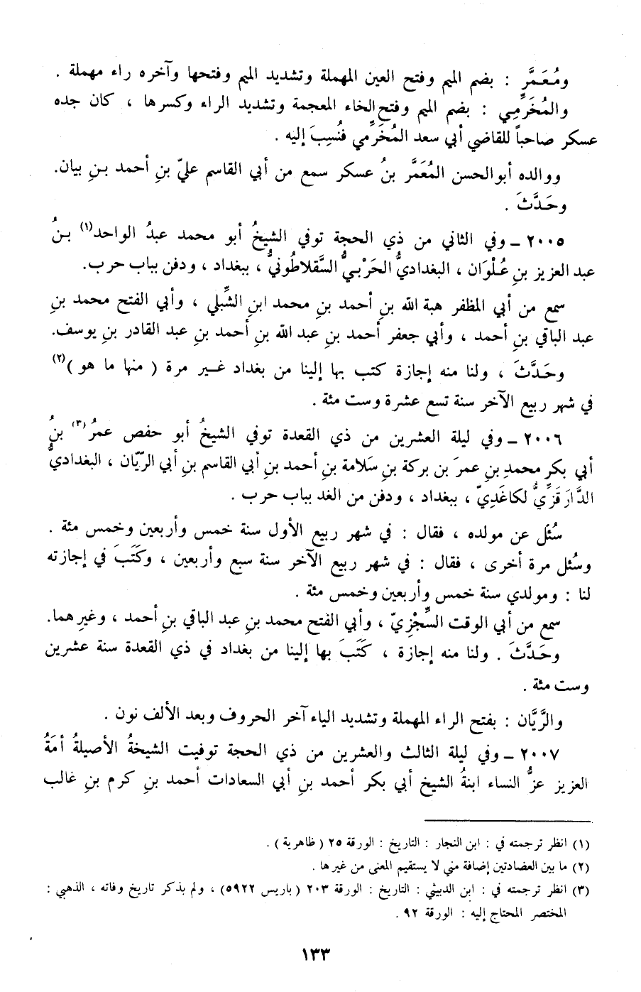 2006 - وفي ليلة العشرين من ذي القعدة توفي الشيخ أبو حفص عمر بن أبي بكر محمد بن عمر بن بركة بن سلامة بن أحمد بن أبي القاسم بن أبي الريان، البغدادي الدارقزي الكاغدي، ببغداد، ودفن من الغد بباب حرب.