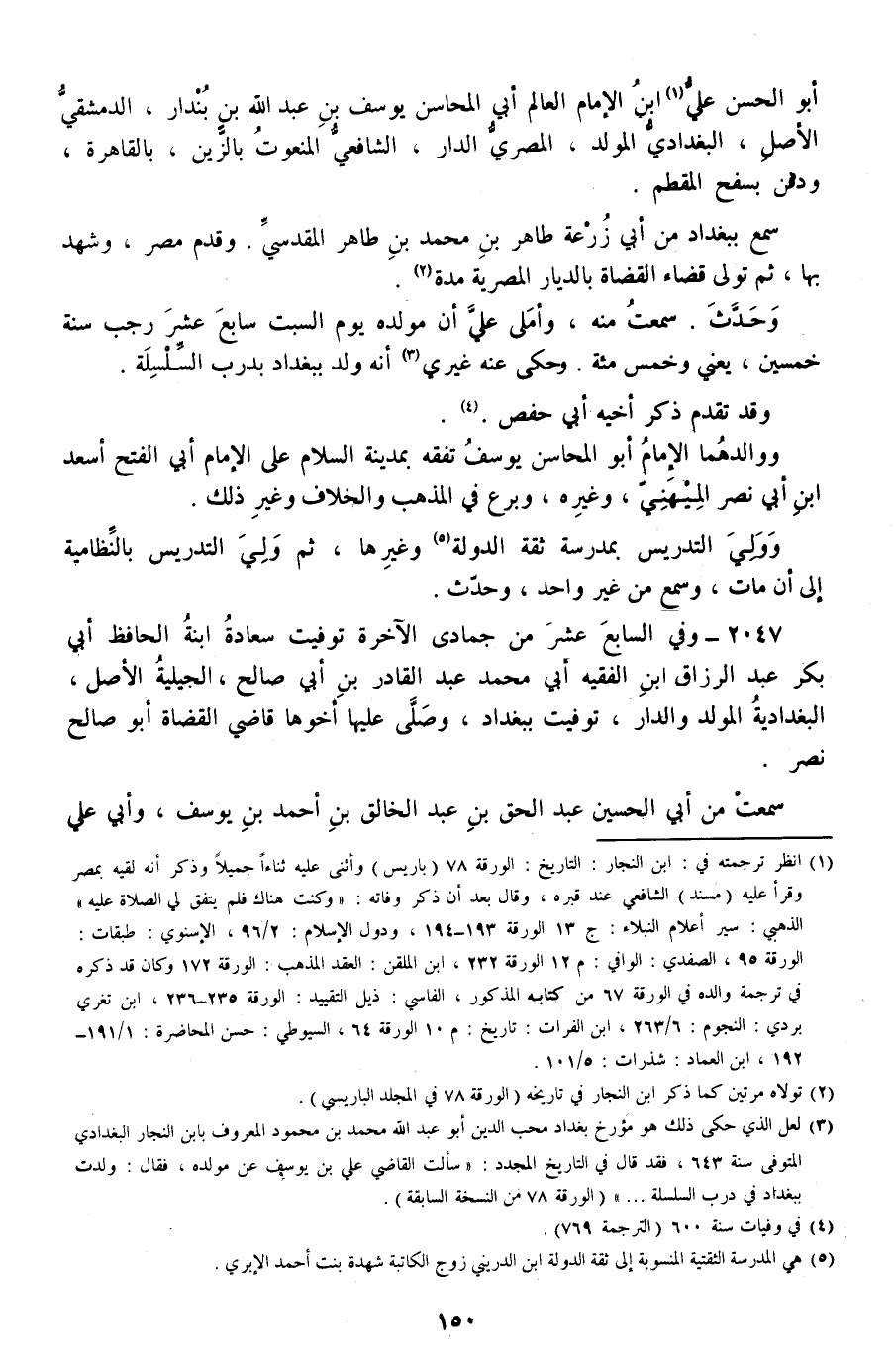 2047 - وفي السابع عشر من جمادى الآخرة توفيت سعادة ابنة الحافظ أبي بكر عبد الرزاق ابن الفقيه أبي محمد عبد القادر بن أبي صالح، الجيلية الأصل، البغدادية المولد والدار، توفيت ببغداد، وصلى عليها أخوها قاضي القضاة أبو صالح نصر.