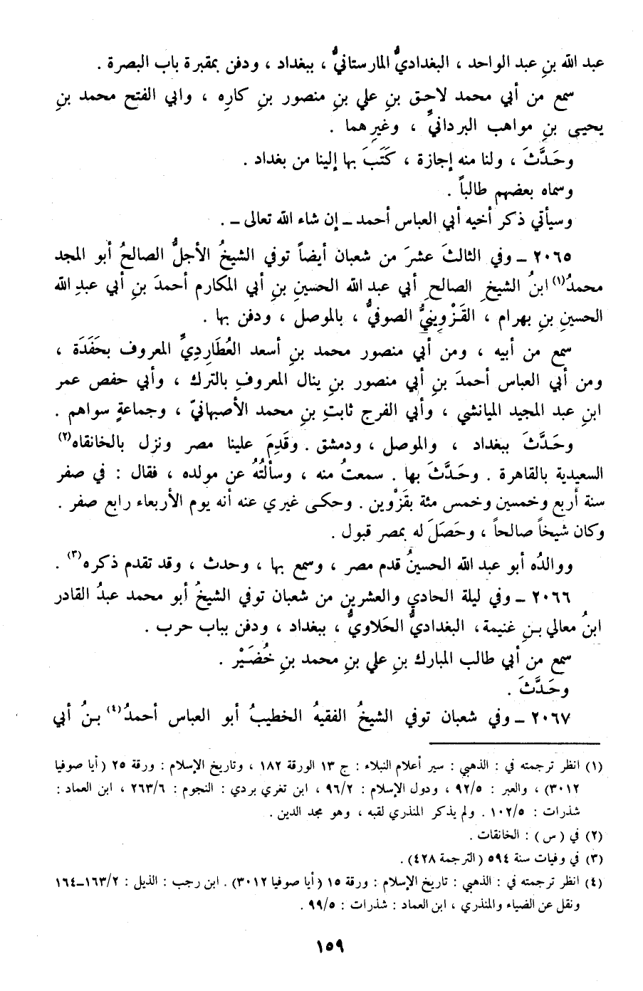 2065 - وفي الثالث عشر من شعبان أيضا توفي الشيخ الأجل الصالح أبو المجد محمد ابن الشيخ الصالح أبي عبد الله الحسين بن أبي المكارم أحمد بن أبي عبد الله الحسين بن بهرام، القزويني الصوفي، بالموصل، ودفن بها.