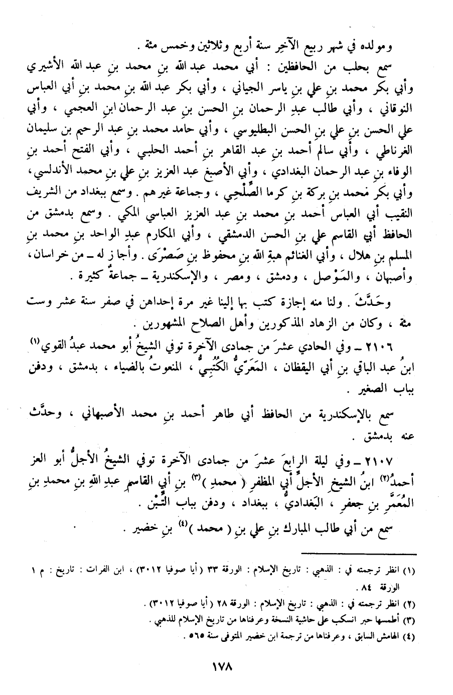 2106 - وفي الحادي عشر من جمادى الآخرة توفي الشيخ أبو محمد عبد القوي بن عبد الباقي بن أبي اليقظان، المعري الكتبي، المنعوت بالضياء، بدمشق، ودفن بباب الصغير.