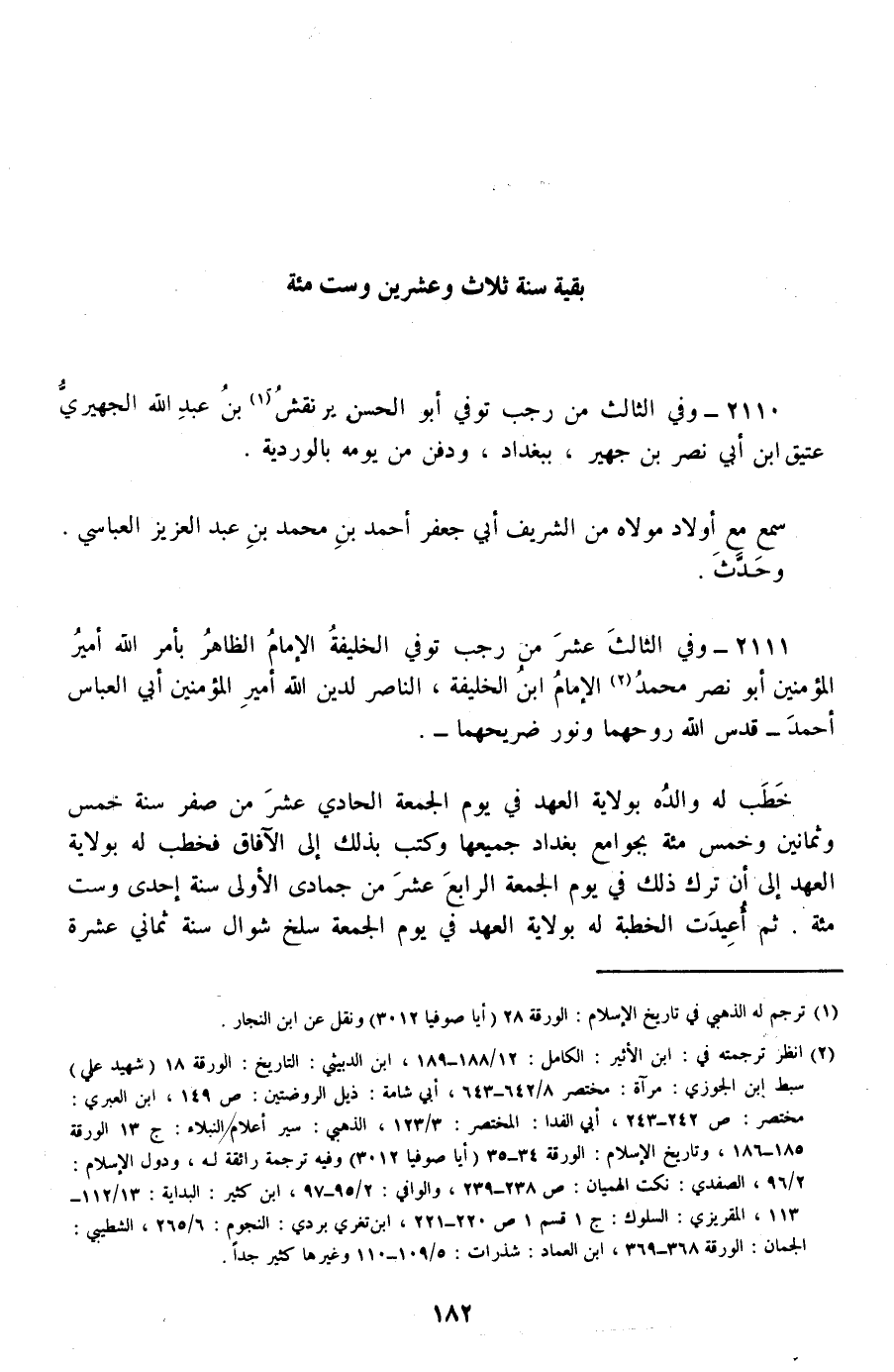 2110 - وفي الثالث من رجب توفي أبو الحسن يرنقش بن عبد الله الجهيري عتيق ابن أبي نصر بن جهير، ببغداد، ودفن من يومه بالوردية.