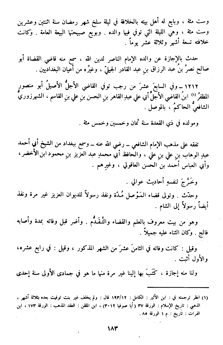 وحدث. وتولى قضاء الموصل مدة ونفذ رسولا للديوان العزيز غير مرة ونفذ أيضا رسولا إلى الشام.